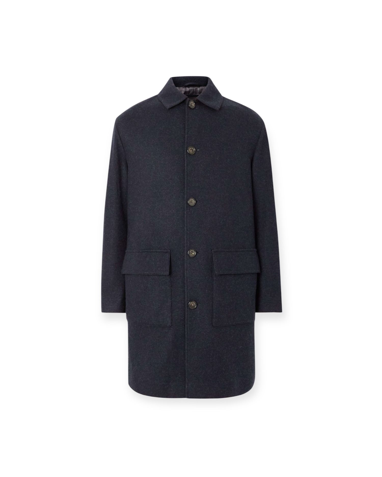 This coat is made from double-faced cashmere, which means both the interior and exterior are finished to the same high standard. The result is a coat that feels exceptional to wear and drapes beautifully. The navy color is easy to style, and the single-breasted cut keeps things clean and refined. Flap pockets add practicality without compromising the silhouette.