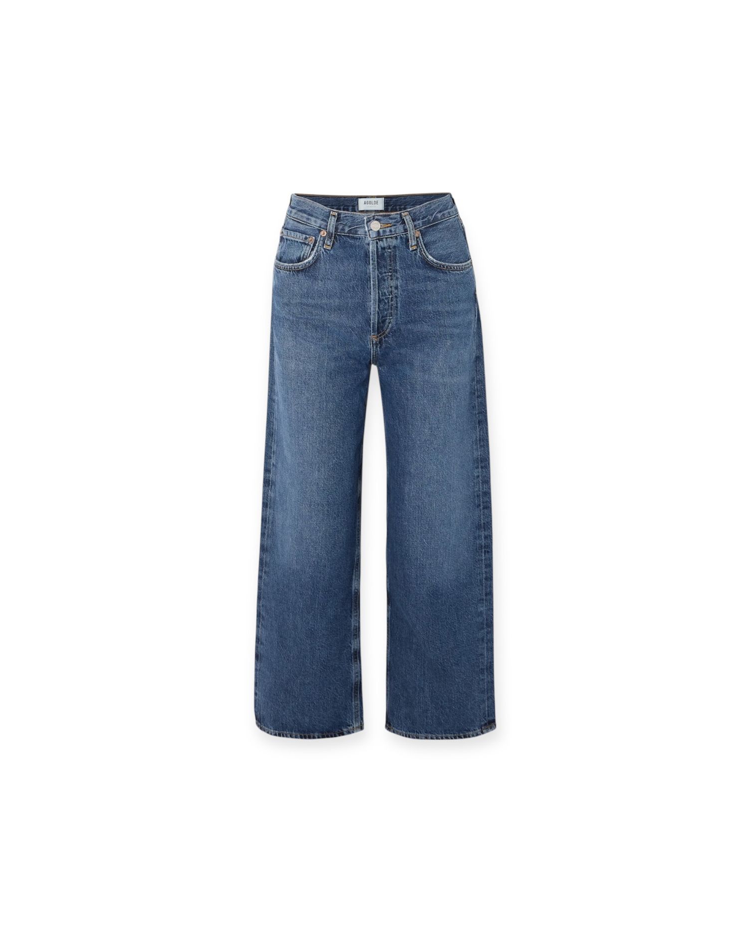 High-rise jeans with a cropped wide leg that work for everyday wear. Made from recycled cotton with a relaxed fit through the leg. The mid-denim wash is versatile enough to pair with almost anything. The cropped length hits at the ankle and works well with both sneakers and boots.