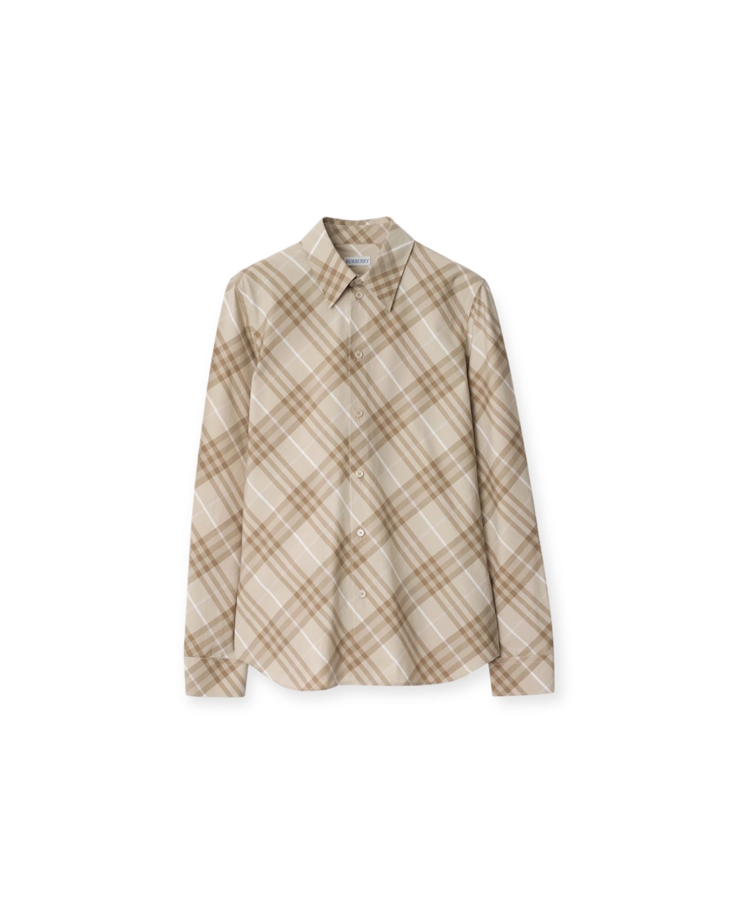 A button-down shirt woven with the signature Burberry check. Cut to a slim fit that follows the body without feeling tight. Made from cotton with classic details: point collar, single-button cuffs, and a curved hem. The stone grey colorway is subtle enough for everyday wear while still showing the house pattern.